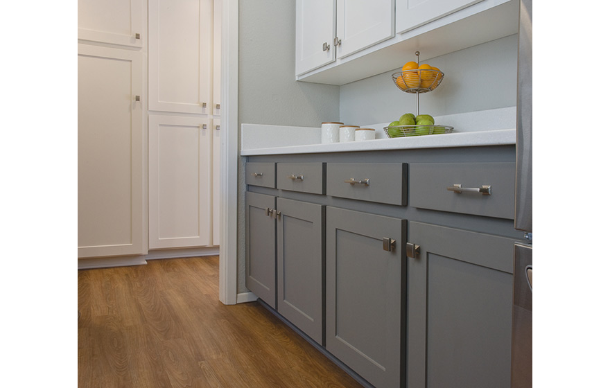 Cabinet Skins: Deco Lam in Satin White and Gauntlet Grey were used.
