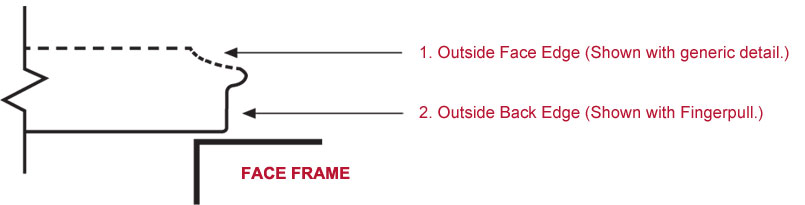 This detail is not as common as No Lip or Fingerpull for new cabinetry, though many older styles of cabinetry feature this 3/8” x 3/8” lipped back edge. If Cabinet Opening Size is ordered, 1/2” will be added to the width and height.